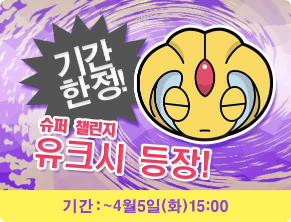 기간한정으로 이벤트 스테이지「슈퍼 챌린지」에 전설의 포켓몬・유크시가 등장!