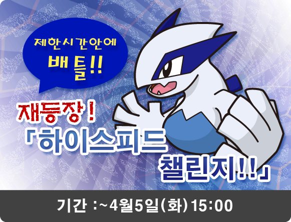 기간한정으로 이벤트 스테이지 「하이스피드 챌린지」에 루기아가 재등장!
