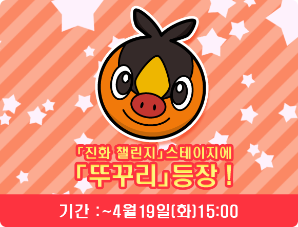 기간 한정으로 이벤트 스테이지 「진화 챌린지」에 뚜꾸리가 등장!