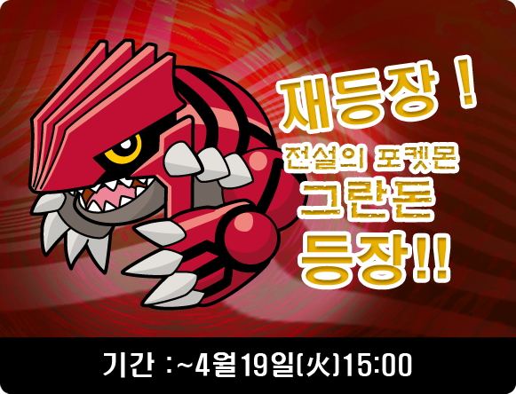 기간 한정으로 이벤트 스테이지 「슈퍼 챌린지」에 전설의 포켓몬 그란돈이 돌아온다!