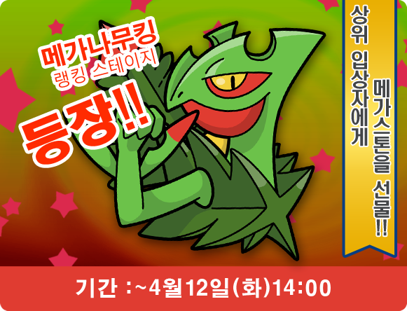 높은 스코어를 획득한 상위 80,000등분들에게는 나무킹을 메가진화시킬 수 있는 메가스톤 「나무킹나이트」를 선물!